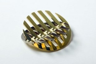 Alpaca en messing, techniek: waterjet, diameter 65 mm. Kleine oplage