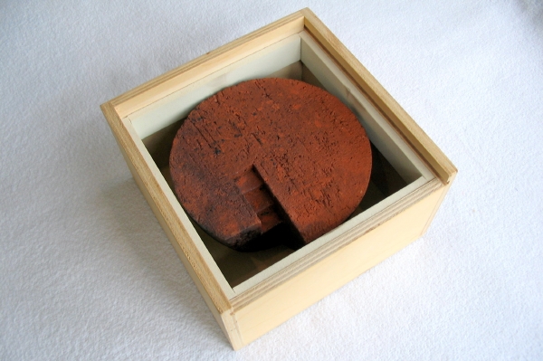 Relatiegeschenk in kistje, oplage 50. De klei werd smorend gestookt, daardoor is ieder beeld uniek van kleur.
