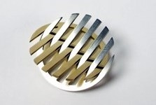 Alpaca en messing, techniek: waterjet, diameter 65 mm. Kleine oplage