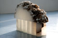 Vervolgens zien we dat de steen gedeeltelijk wordt bewerkt. De harde ingreep contrasteert met de door de natuur gevormde steen.